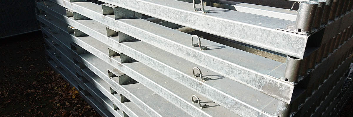 Dieses Transportgestell kann bis zu 30 Bauzäune aufnehmen.