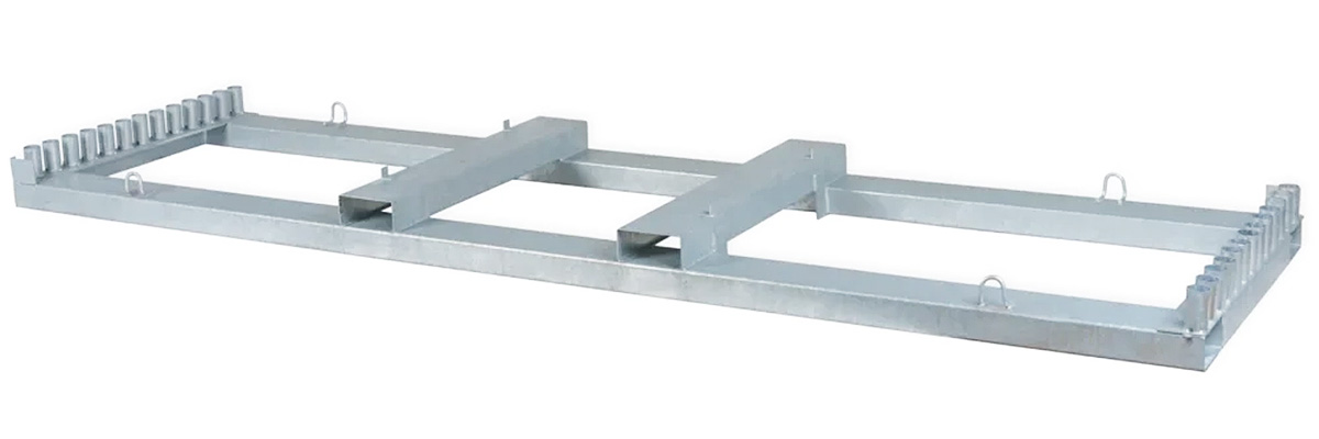 Von 4 Seiten aufnehmbares Transportgestell für 26 Bauzäune.
